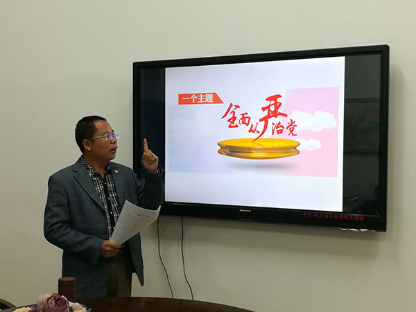 谢友福从全面从严治党的主要举措、党员干部四个意识、加强和规范党内政治生活以及紧紧围绕以习近平同志为核心的党中央等四个方面对十八届六中全会精神进行系统阐述,并重点解读了《关于新形势下党内政治生活的若干规则》《中国共产党党内监督条例》。