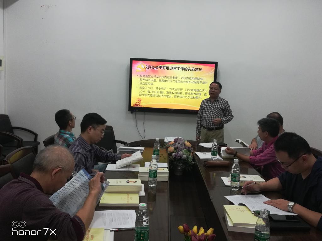 2018年10月21日下午,公司党委在公司306会议室召年习近平新时代中国特色社会主义思想“大学习”专题研讨会。会议由党委书记谢友福主持,党委委员、中心组成员、各支部书记出席本次会议。 谢友福同志就《公司党委关于开展巡察工作的实施意见》进行了说明,强调要以“四个意识”为政治标杆进行巡察工作,以党章党规党纪为尺子,着力发现问题,查找政治偏差,形成有力震慑,推动党的先进性和纯洁性建设,提升公司办学治校能力。 他指出,应巡查党建方面存在的问题、违反政治纪律和政治规矩问题、违反组织纪律,违背党的民主集中制,违反“三重一大”决策制度问题、违反廉洁纪律问题、违反群众纪律、工作纪律及生活纪律问题等五个问题。