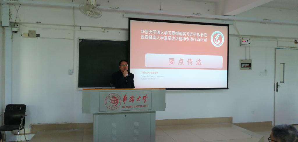 谢友福同志首先强调了习近平总书记视察暨南大学重要讲话精神的重大意义,他详细讲解了《中央统战部办公厅关于认真学习贯彻习近平总书记视察暨南大学重要讲话精神的通知》(厅字﹝2018)54号)的文件精神,从坚持党对公司的全面领导,确保社会主义和爱国主义的办学方向、坚持立德树人,始终牢记教育的根本使命、突出侨校特色,精心擦亮侨校金字招牌、坚持改革创新,切实抓好团队建设和教师队伍建设基础性工程、厚植文化根基,以把中华优秀文化传播世界为己任、积极发挥优势,为“一带一路”、粤港澳大湾区建设作出更大贡献等六个方面做了阐述。随后他解读了《云顶国际8588yd深入学习贯彻落实习近平总书记视察暨南大学重要讲话精神专项行动计划》及任务分解的通知(华大委〔2019〕24 号)《云顶国际8588yd深入学习贯彻深入贯彻落实习近平总书记视察暨南大学讲话精神》,要求公司系部、研究所、各党支部要认真对照中央统战部要求和专项行动计划六大方面、二十二项任务,在教学、科研、团队建设等方面制定具体、可操作的办法和措施,做到任务细化、时间明确、措施到位、落实有力,抓紧推进专项行动计划在公司的落地见效。