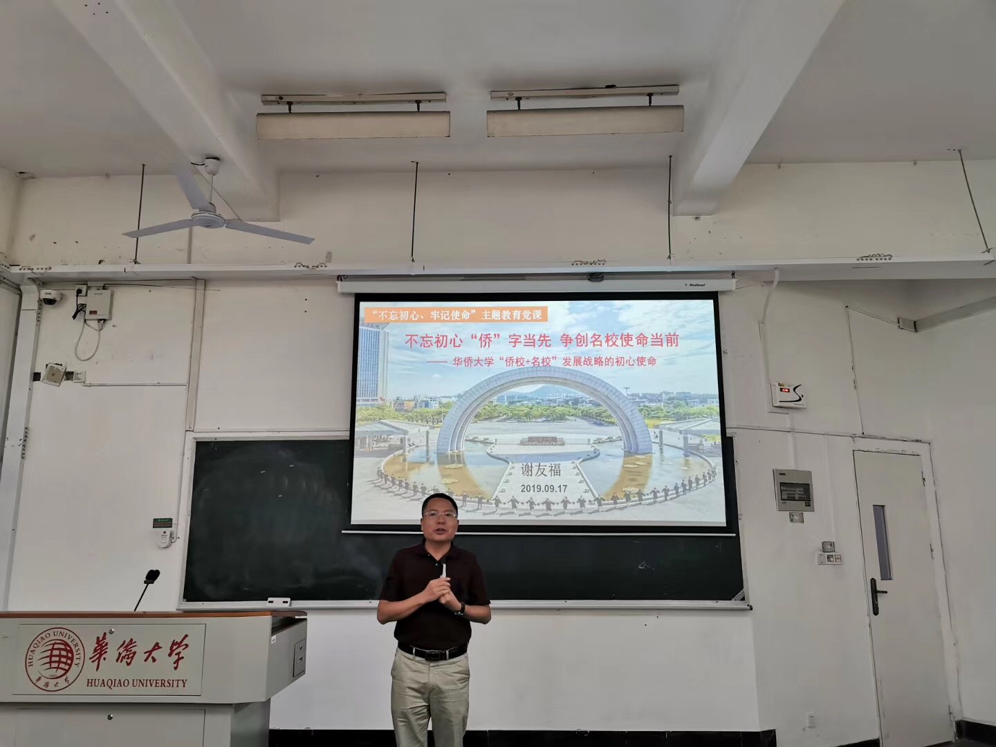 2019年9月17日下午,公司党委书记谢友福在经管1-3阶梯教室,以“不忘初心‘侨’字当先,争创名校使命当前”为题,为公司中心组成员、党委委员、全体教工党员上了“不忘初心、牢记使命”主题教育首场党课。