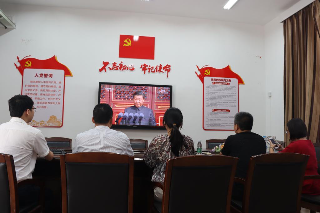 2019年10月1日公司党委委员、教工党员和员工党员分别于公司306和207会议室,有序收看庆祝中华人民共和国成立70周年大会的现场直播。上午10点,公司80多名党员和入党积极分子按时到达,着装整齐,有序就坐,迎接这一伟大而神圣的庆典。