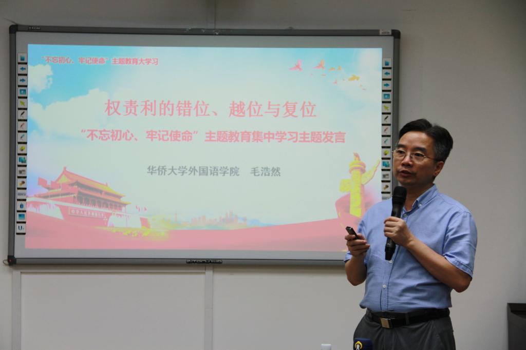 毛浩然经理首先对“权、责、利”三个字进行了全面释义,并联系工作实际强调了三点:一是要把权力关进制度的笼子,让权力在阳光下运行,公司“三重一大”事项必须经过党政联席会议商定;二是在其位,要谋其政,强调“无功便是过”的理念,不能做“不求有功,但求无过”的懒领导;三是要平常心对待各种名利权益,进退得失,存乎一心。毛浩然经理还结合自身的学习工作经历,认为“权、责、利”在工作中要各就各位,各司其职,是相互依存的动态平衡。接着他从凌虚、务实、逼近、致远、悟得、慎失方面,讲解了对习近平新时代中国特色社会主义思想和“不忘初心、牢记使命”的主题教育内涵的理解。他认为公司发展和人才培养,都要在主题教育的学习贯彻过程中,学懂弄通更要积极推进狠抓落实,领导干部要学贵心悟,学以致用,不断提高战略思维、历史思维、辩证思维、创新思维、法治思维、底线思维能力。他提出在公司的工作中要坚持以解决实际问题为导向,积极帮助师生解决实际困难,通过各类座谈会、答疑会、见面会和专题研讨会,更加密切联系广大师生,倾听群众的心声和诉求,不忘高等教育工作者的初心和使命。