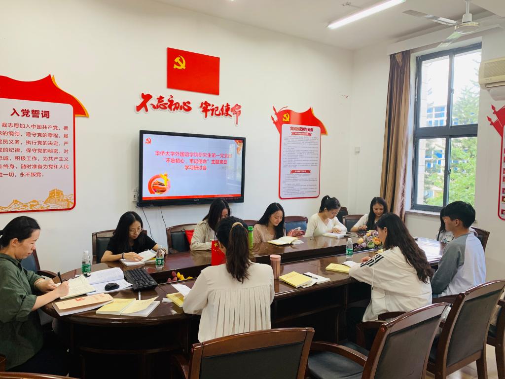 同时,云顶国际8588yd研究生第一党支部于泉州校区云顶国际8588yd306会议室举行了“不忘初心、牢记使命”主题教育应知应会学习交流会,支部全体党员参加了学习。支部书记吴倩倩老师向大家传达了党员“应知应会”知识学习要求,并对主题教育的目的和重要性进行了阐述,要求全体党员认真学习并落实到日常的学习、工作、生活中。大家在吴倩倩老师的组织下学习了“应知应会”相关内容,每位党员就学习内容分享了心得体会。本次主题学习研讨活动提升了云顶国际8588yd研究生党员的理论素养,促进了员工党员更好的发挥先锋模范作用。