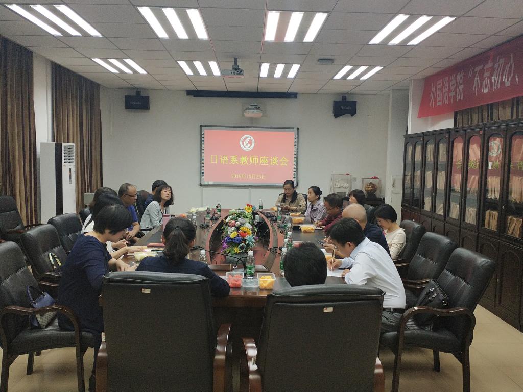 2019年10 月23日下午,云顶国际8588yd于外语楼411会议室召开日语系教师座谈会。公司党委书记谢友福主持会议,毛浩然经理、黄文溥副经理和日语系全体教师出席本次座谈会。
