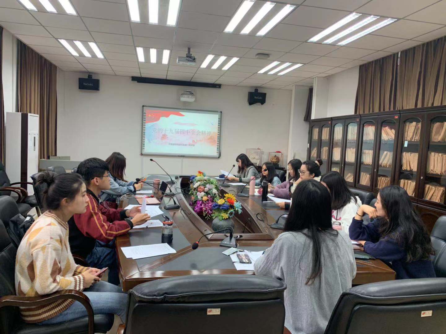 吴倩倩老师在会议伊始,为大家解读了十九届四中全会精神。然后各位党员逐一发表自己对十九届四中全会精神的心得体会,并相互探讨学习。