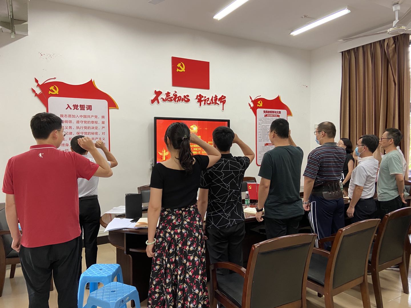 2020年7月1日下午,为庆祝中国共产党成立99周年,公司党委在公司306党建室召开期末党委工作会议,举行“重温入党誓词、执守初心使命”集体宣誓仪式。公司党委委员出席会议,各支部书记列席会议,在党委书记谢友福的带领下,举行集体宣誓仪式,一同重温了入党誓词。