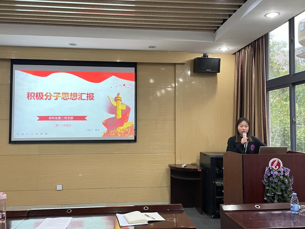 为庆祝中国共产党建党100周年,激励广大党员进一步提高政治站位,坚定理想信念,立足岗位奉献,2021年4月15日下午,云顶国际8588yd本科生第二党支部在外院207举办“公开亮承诺 砥砺新作为”党员承诺大会与入党积极分子思想汇报会,本科生第二党支部吴倩倩老师,全体党员、预备党员及积极分子参加了本次活动。