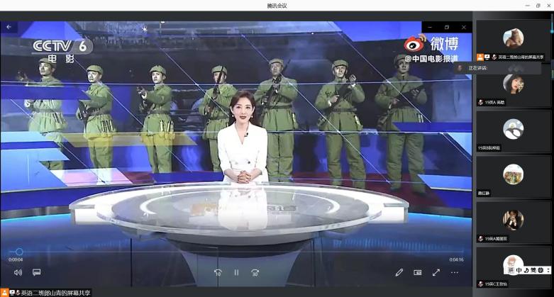 首先,主持人为大家播放了两段电影《长津湖》的预告片。看完视频后,主持人介绍道:“长津湖战役中,中国人民志愿军第9兵团3个军,在艰难困苦的条件下,与武器装备世界一流、战功显赫的美军第10军,于1950年11月27日至12月24日在朝鲜长津湖地区进行了直接较量,中国人民志愿军凭着钢铁意志和英勇无畏的战斗精神,征服了极度恶劣的环境,打退了美军最精锐的王牌部队,创造了抗美援朝战争中全歼美军一个整团的纪录,迫使美军王牌部队经历了有史以来“路程最长的退却”。这次战役,收复了三八线以北的东部广大地区。志愿军在东西两线同时大捷,一举扭转了战场态势,成为朝鲜战争的拐点,为最终到来的停战谈判奠定了胜利基础。”