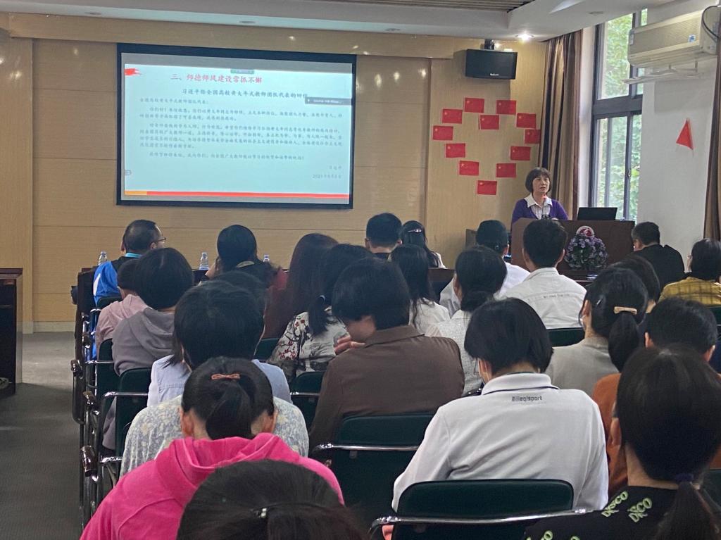 党委书记李璐岚首先对近期公司党委相关工作进行了通告,随后带领全体教师职工解读了张桂梅先进事迹及《公司关于加强师德师风建设工作实施意见》等文件的主要要求。她着重强调云顶国际8588yd全体教师应自觉增强责任感、使命感、荣誉感;自觉维护以德立身、以德立学、以德施教、以德育德的教师队伍形象,自觉落实“有理想信念、有道德情操、有扎实学识、有仁爱之心”的教师队伍规范,汇聚合力,提升教学成效。随后,与会教师共同观看了全国“七一勋章”获奖者张桂梅同志在颁授仪式上所作的演讲,李璐岚号召全院教师要以张桂梅同志为榜样,学习张桂梅同志坚守初心、对党忠诚的崇高品格;学习她爱岗敬业、爱生如子的高尚师德;学习她执着奋斗、无私奉献的至诚情怀。随即,在场人员共同学习了《习近平给全国高校黄大年式教师团队代表的回信》,学习优秀教师黄大年的教学精神及优秀品质。李璐岚同志指出,弘扬“黄大年”教师团队精神要求广大教师“立德修身”“潜心治学”“开拓创新”,了解员工思维,转变教学模式,以科研反哺教学,在知识探究中激发员工潜能,从而不断提升教书育人本领。