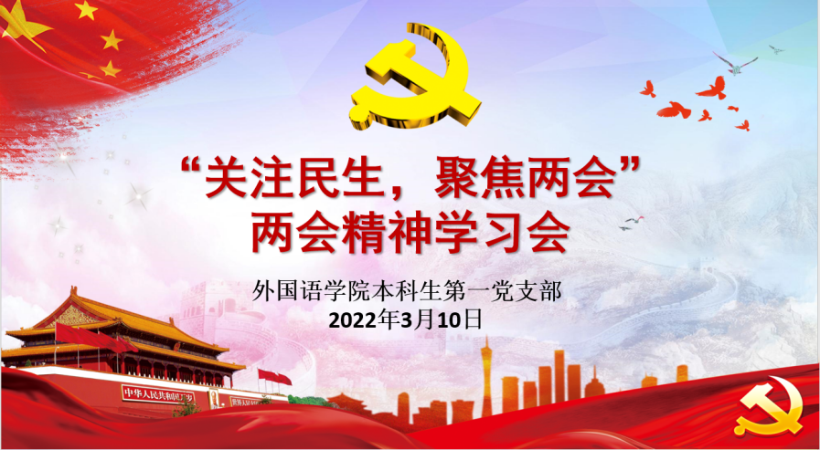本次学习会以“关注民生,聚焦两会”为主题,带领全体党员、预备党员和入党积极分子对近期召开的两会背景、主要议题、关注热点等相关内容进行学习。