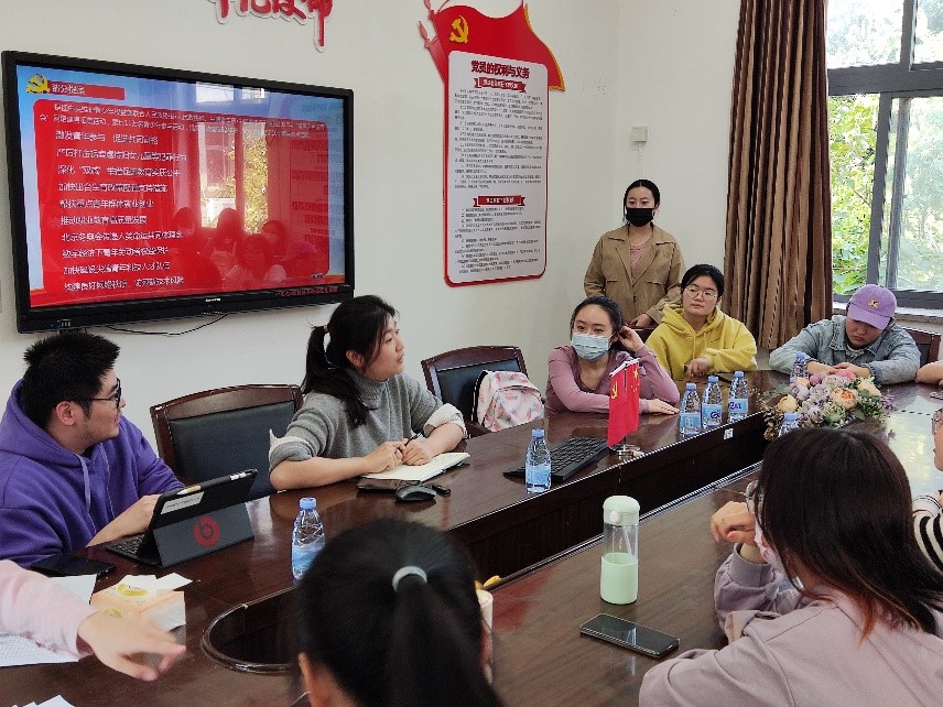 支部书记黄洁萍老师表示,两会是各行各业的人大代表反馈广大人民的需要和对国家发展建议的重要途径,代表着广大中国人民的利益,2022年是党和国家事业发展进程中十分重要的一年,两会将传递出中国经济社会发展砥砺前行的信心和底气,她希望支部党员能够“多多关注国家大事,积极参与国家建设”。