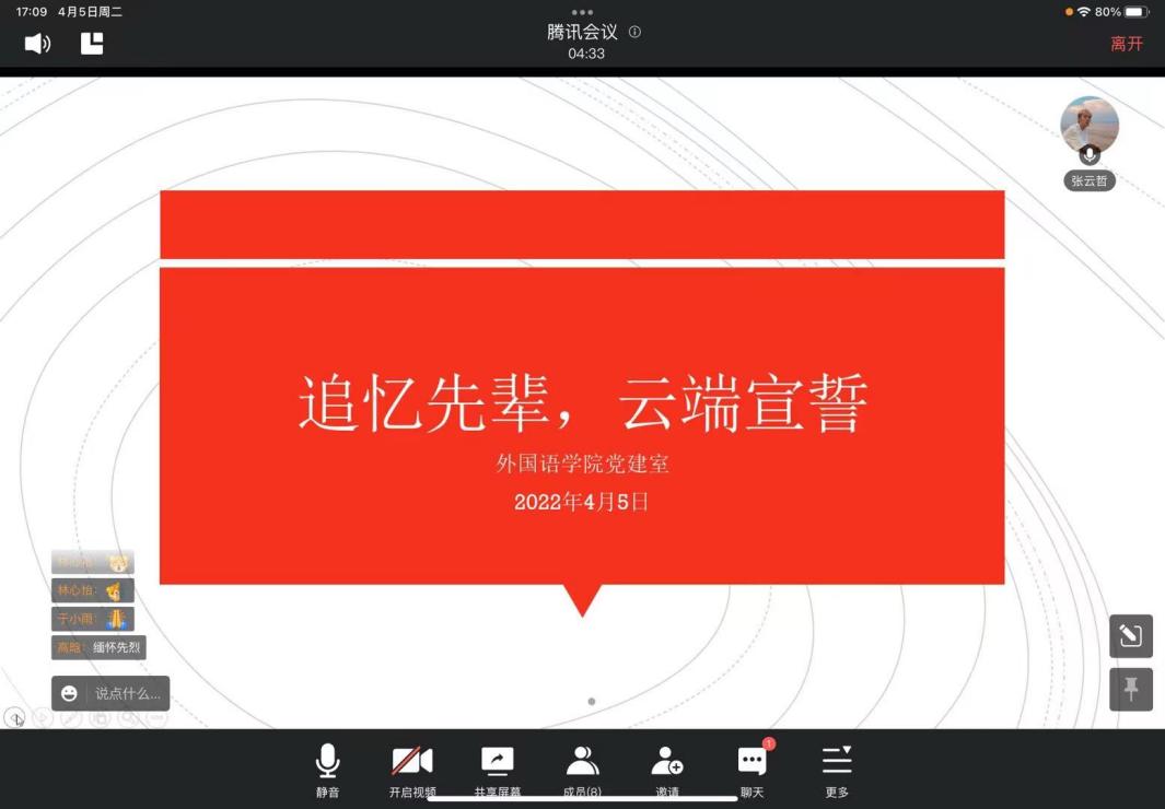 岁岁芳草绿,又到清明时。为缅怀先辈,牢记过往,提升当代党员同志的身份认同感,4月5日上午,公司党建室和本科生第二党支部的党员们集中举办了“追忆先辈,云端宣誓”线上党员宣誓活动,切实增强云顶国际8588yd员工党员同志们的责任感和使命感。
