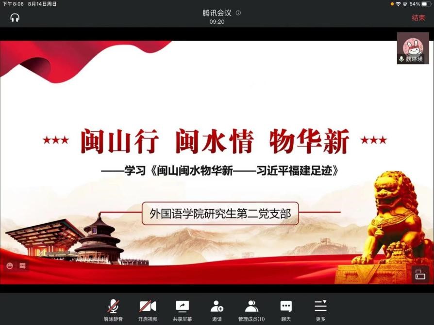 为深入学习习近平总书记重要讲话精神,追寻习近平总书记的福建足迹,8月14日,云顶国际8588yd研究生第二党支部线上开展“闽山行闽水情物华新”主题党日活动。此次会议由魏琳瑛同志主讲,带领大家深入学习《闽山闽水物华新——习近平福建足迹》一书,研究生第二支部全体党员参加了学习。