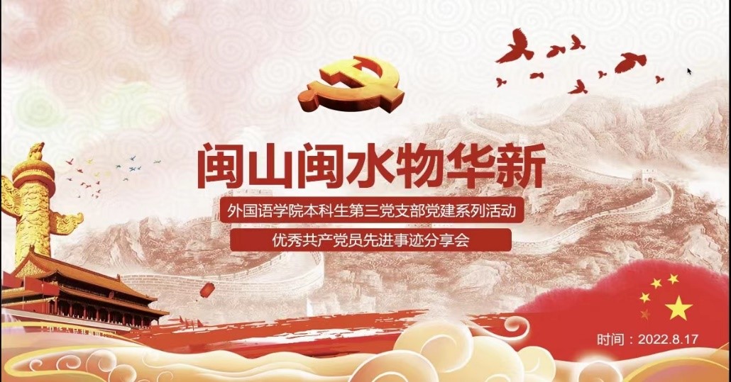 2022年8月17日,云顶国际8588yd本科生第三党支部专题学习了“闽山闽水物华新”和优秀共产党员先进事迹分享会,会上参与分享的老师与同学们分别讲述了学习心得和优秀党员的事迹与精神:任晶晶同学分享了优秀党员张桂梅同志的事迹,党员应以张桂梅老师为榜样,作为新时代青年要牢记使命,珍惜当下的大好环境,努力奋斗。李祯同学分享了优秀党员郭明义同志的事迹,30多年来,郭明义无论在什么岗位上,都像雷锋那样忠于职守,爱岗敬业,做一颗永不生锈的螺丝钉,把工作当事业,把职责当使命。在郭明义身上,我们看到了一名普通职工的高尚情操和对企业的热爱,理解了主人翁精神的真谛。刘颖同学分享了优秀党员黄文秀同志的事迹,我们要学习黄文秀不忘初心、牢记使命,勇于担当、甘于奉献的精神,是我们大家学习的榜样,一批又一批的青年在这条新的长征路上接续奋斗,开辟星辰大海。刘冰冰同学分享了优秀党员廖俊波同志的先进事迹,逝世8个月后,廖俊波被评为第六届“全国敬业奉献道德模范”。他像一湾俊朗清波,滋润了闽北大地。他像一颗种子,种在广大干部群众心里。陈鑫艺同学分享了优秀党员董云阁同志的先进事迹,年仅24岁董云阁烈士用他年轻的一生,向我们讲述了他永存的英勇不屈的烈士精神。余新田同学分别分享了七一勋章获得者周永开、崔道植、刘贵今一生为党的事业无限忠诚、默默奉献的先锋事迹。