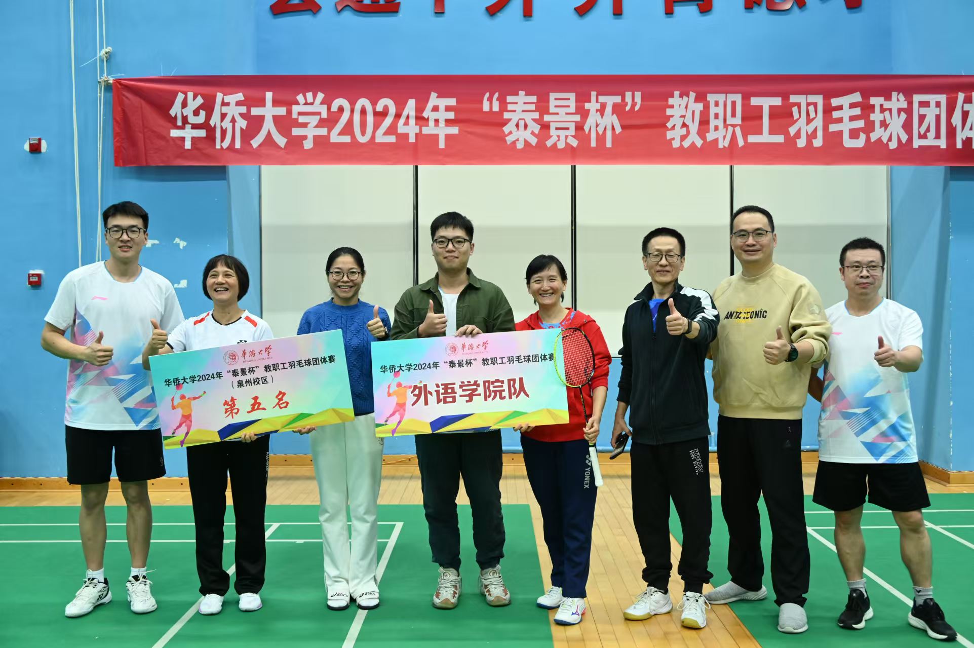 11月23日,由校工会主办的“2024年教职工羽毛球团体赛”在校羽毛球馆顺利举行,公司教职工组队参赛。赛场上,老师们敢打敢拼,默契配合,经过小组赛、淘汰赛的激烈角逐,最终,公司教职工羽毛球队获得第五名的好成绩。