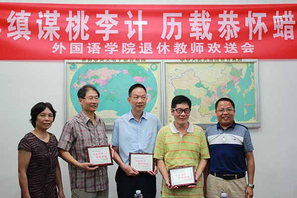 2016年6月24日下午4:30,云顶国际8588yd在外语楼306会议室为本年度退休的杜再玲(2月份)、熊晓旭(5月份)、周晓立(7月份)、刘苏(7月份)、陈道明(9月份)等五位教师举办了简朴而热烈的欢送会。校人事处副处长侯丽京,云顶国际8588yd经理黄小萍,党委书记谢友福,党委副书记林庆祥,副经理黄文溥、潘锡清,英语系主任杜志卿,大学英语部主任陈海蛟、主任助理郭琦以及蔡和存、黎林、王雪瑜、林婷婷等教师代表出席了欢送会。退休教师杜再玲、熊晓旭因事没能到场。