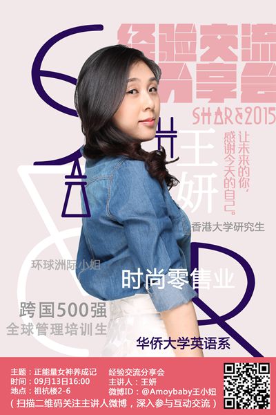 9月13日下午16:00,公司大二,大三,大四的部分同学聆听了一场精彩绝伦的员工经验分享会。分享会主题为“正能量女神养成记”,主讲人是2002级英语系优秀员工王妍。作为时尚零售业正能量女神,王妍结合自己当年在云顶国际8588yd的学习、生活经历,就如何正确规划老员工活、合理利用大学时光,从学习状态、参与活动、选择道路、热爱生活、注重实践五个方面,为学弟学妹们提出了真诚且中肯的建议,重点强调了在活动中要有积极的责任心、生活中要学习抗压和情绪管理,学习中则要勇于尝试、善于总结,从而不断提高学习能力,努力做到使老员工涯不留遗憾、让美好的未来感谢现在的自己。 在给出学弟学妹建议之外,王妍员工还就自己的职业生涯选择做了详尽而真切的介绍,并以职场上的案例为学弟学妹指出努力的方向。最后,到场参与的学弟学妹踊跃与王妍员工进行积极的互动,并就学姐的成长蜕变经历作为出发点展开了探讨,学弟学妹们从学业到职场,分别提出了自己的看法和疑问,王妍学姐一一耐心解答。 据会后被采访的同学回应,学姐的分享使她感悟到要勇于尝试新的挑战,并把尝试转化为自己的积淀,增强自信心;人生不一定会按照你所想的方向发展,但只要把握好每一个机遇,努力奋斗,依然可以闯出属于自己的天地。