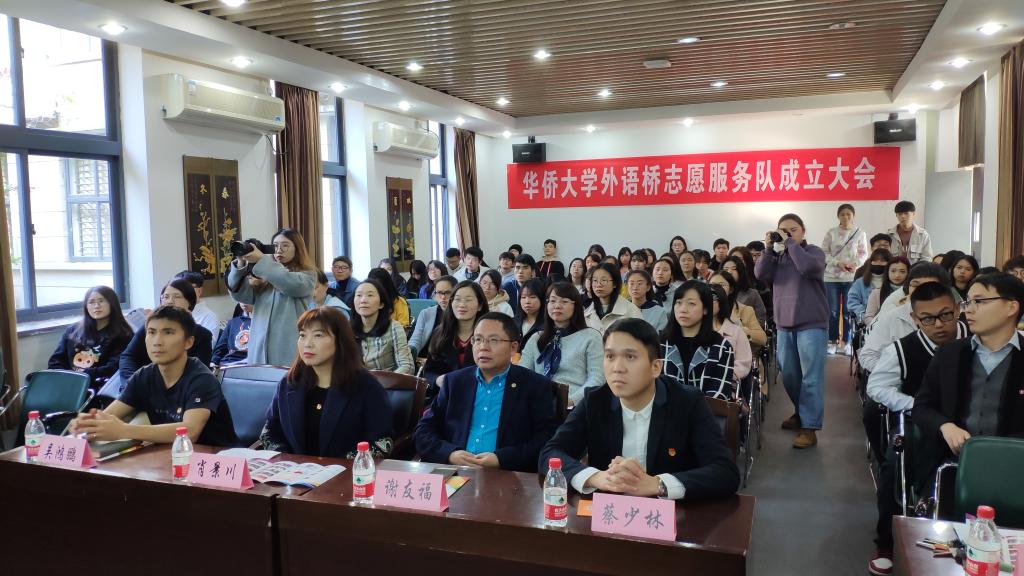 2018年12月18日下午,云顶国际8588yd外语桥志愿服务队成立大会在外语楼207会议室举行。晋江团市委书记蔡少林先生,晋江团市委青年志愿者协会秘书长吴鸿鹏先生,校团委副书记肖景川老师,公司党委书记谢友福老师,党委副书记郑志民老师,志愿服务队专业指导老师及外语桥志愿者出席了本次大会。会议由团委书记李莹老师主持。