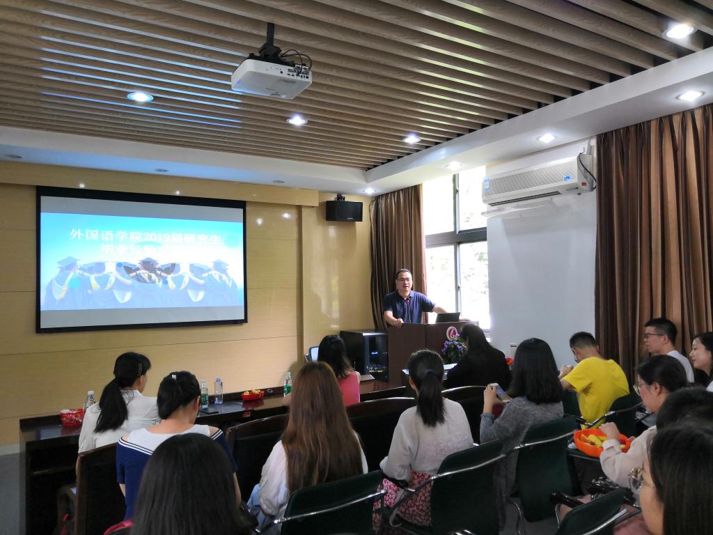 2019年6月30日上午10点,2019届毕业研究生经验交流会在外语楼207室顺利举行。公司党委副书记郑志民,研究生辅导员吴倩倩,研究生教学秘书金子惜出席本次经验交流会,部分在校研究生参加会议。