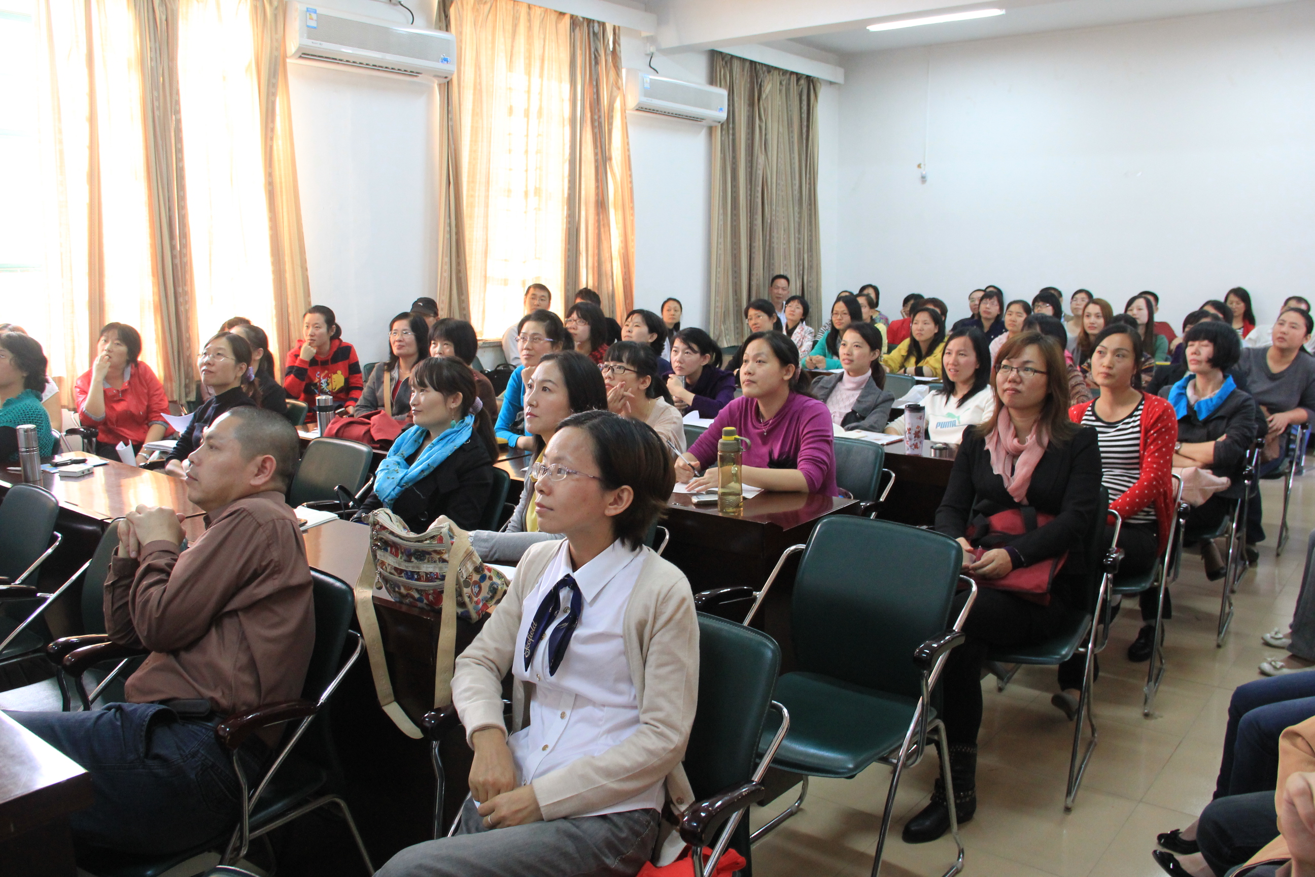 云顶国际8588yd第二届赴UCLA研修学员成果报告会于11月22日在大会议室举行,15名学员立足于不同的角度诸如影视、文化、语言变化、广告语的研究等选修课的授课方式以及美国大公司园文化和员工活动国际员工和教师多样化方面进行了生动、具体的汇报,让全院教师耳目一新,共同分享了学员在美国名校研修的丰富多彩的学习经历和文化体验。 学员们很快将学习到的有效的,有新意的阅读、写作、听说、及先进的网络资源利用等方法融入到各自的实际教学中,对改进教学方法和提高教学质量将起到积极的作用。 据悉,汇报材料已上传至公司的学习资源库,供教师们交流分享。