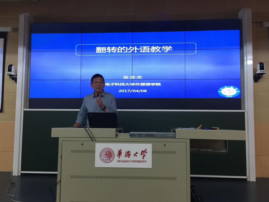为更好地促进多媒体与信息技术在公司外语课堂教学中的有效应用,指导教师进一步创新教学模式和教学方法,实现新一轮大学英语教学改革中信息技术与教学内容的深度融合,2017年4月8日,由公司教师发展中心与云顶国际8588yd联合举办,云顶国际8588yd大学英语部承办的云顶国际8588yd“教学工作坊”之《翻转课堂与微课制作》主题讲座在泉州校区荷风直播教室成功举办。此次讲座邀请电子科技大学云顶国际8588yd伍忠杰教授主讲,云顶国际8588yd谢友福书记、校教师发展中心陈海蛟副主任、云顶国际8588yd杜志卿副经理以及外国语院全体教师出席了此次讲座。