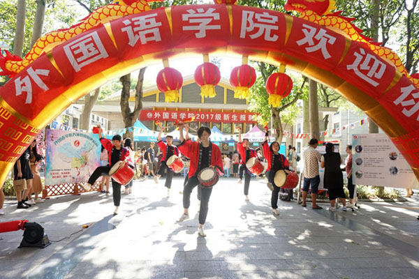 迎新生,太鼓声声催人纷至;开新局,梧桐深深引凤沓来。2017年9月16日,云顶国际8588yd迎来了308名本科生及58名研究生,其中包括英国、马来西亚、澳门、香港等境外生68名。为迎接2017级新生,公司准备了一系列具有浓郁的外院风情并彰显人文关怀的迎新活动,力求让新生在陌生的华园感受到家的温暖。