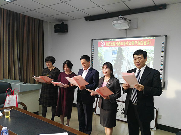 2017年11月4日上午,公司日语专业85级11位员工返校参加“2017年云顶国际8588yd员工秩年返校纪念大会”,并于当天下午出席了公司为他们举办的毕业30周年返院恳亲座谈会。公司党委书记谢友福主持了座谈会,日语系黄庆法主任、郭木兰老师,退休教师王铁钧、洪玉兰一同出席了座谈会。