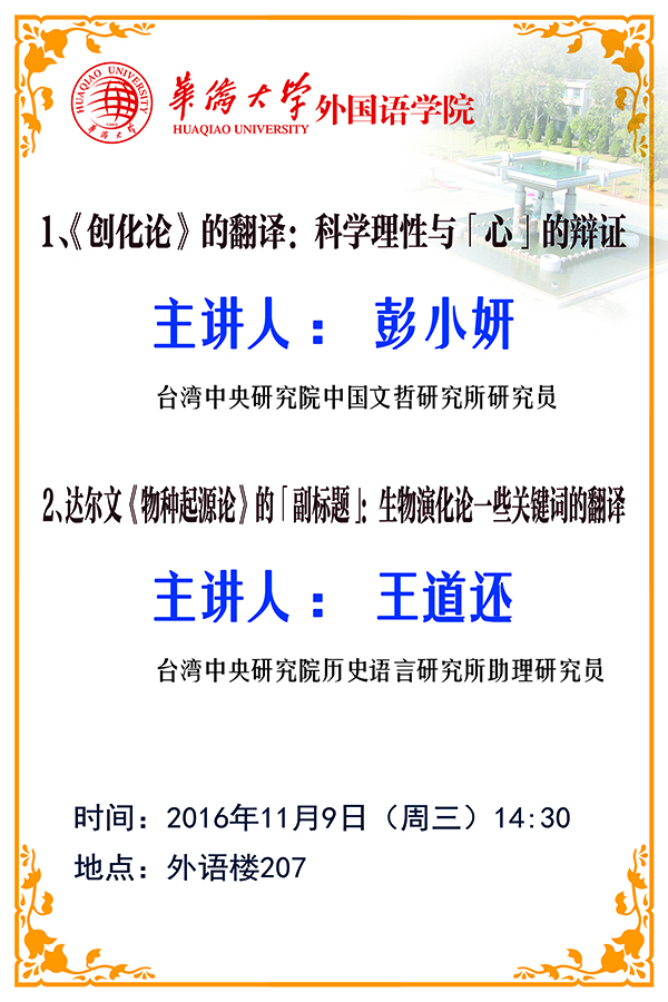 下一条:讲座信息:1.跨文化词汇:「人生观」与欧亚反启蒙论述;2.重读《天演论》,兼论严复译作研究