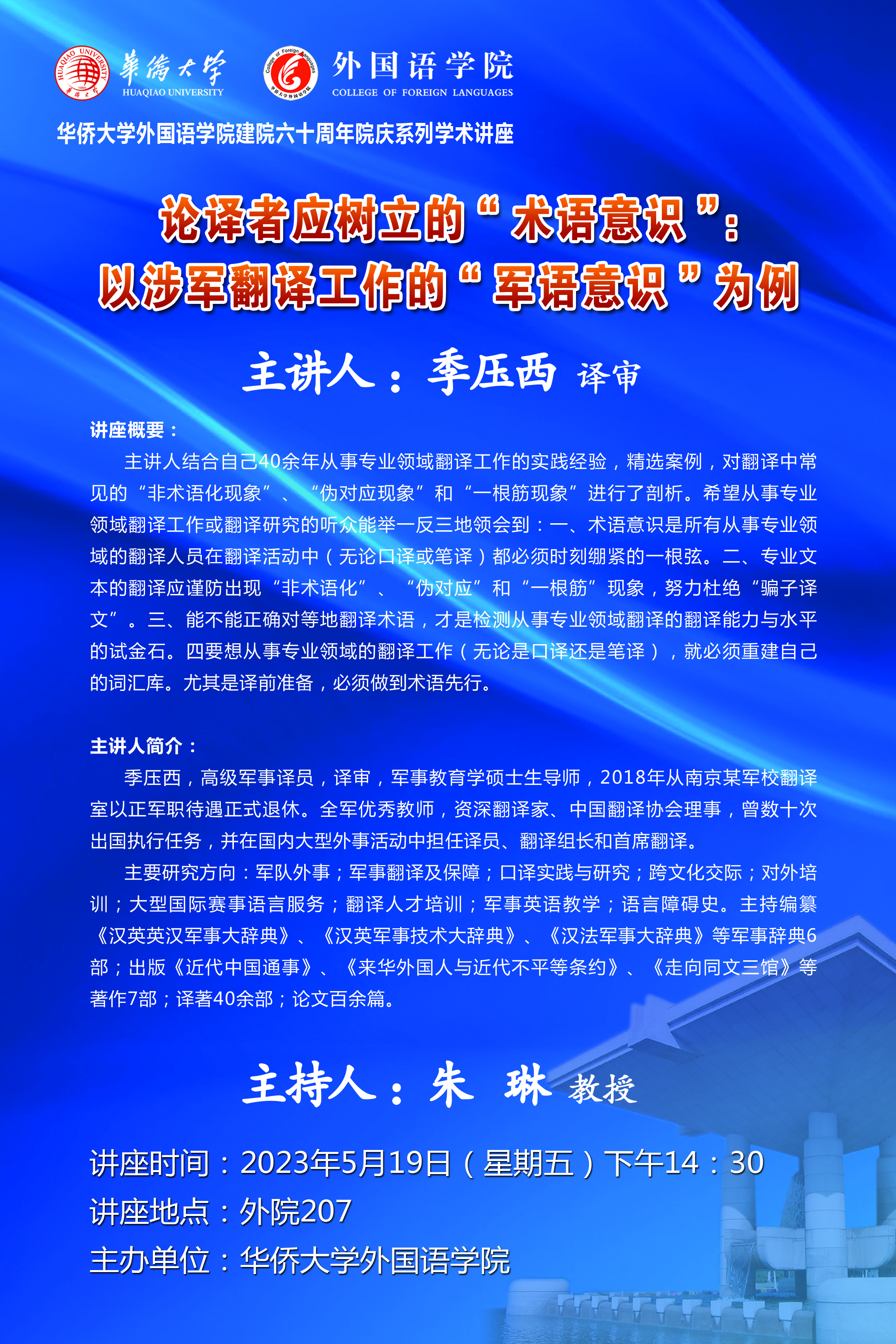 上一条:讲座信息:社会翻译学的缘起、原理与研究方法(主讲人:王洪涛 教授)